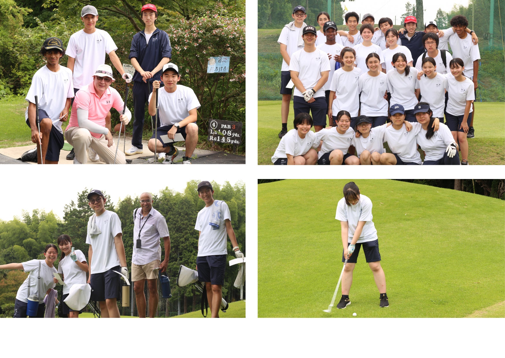 国際高等学校の生徒は入学当初、全員ゴルフ初心者であったため、立浦氏は基礎技術の習得やスイング形成に特に力を入れたといいます。プロの動きを間近で観察したり、自分の動きに対する細やかなアドバイスをもらったりする中で、生徒は少しずつゴルフの能力を身につけました。今回ゴルフ大会に参加した生徒は「私はずっとスポーツが苦手だと思っていたけど、今日は良いショットを打つことができて、さらに一位を取ることができて驚いた。」「普段はキャンパス内のゴルフ練習場で練習していたから、初めてのゴルフコースは戸惑うところもあった。さまざまな場面に合わせてプレイができるようになりたい。」など、思い思いの感想を話しています。また、指導者の立浦氏は「通常、ゴルフの指導は一人の先生につき1〜4人の生徒を教える。全員が初心者かつ大人数に対して一斉指導するという環境の中、1年間で全員がゴルフコースでプレイできるまでに成長したのは驚くべきことだ。」と生徒の努力を褒め称えました。