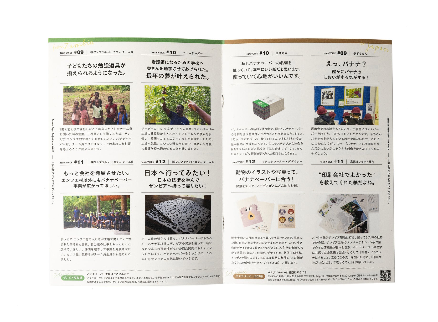 ・2024年 バナナペーパーの原料となる茎繊維をつくるザンビアを現地視察。大阪初開催のワンプラネット・ペーパー®フェスに初出展。子ども環境教育情報紙「エコチル」オフィシャルパートナープログラム2024に参画。小学生向けに工場見学を実施。「877人から始めるバナナ名刺プロジェクト」を開始