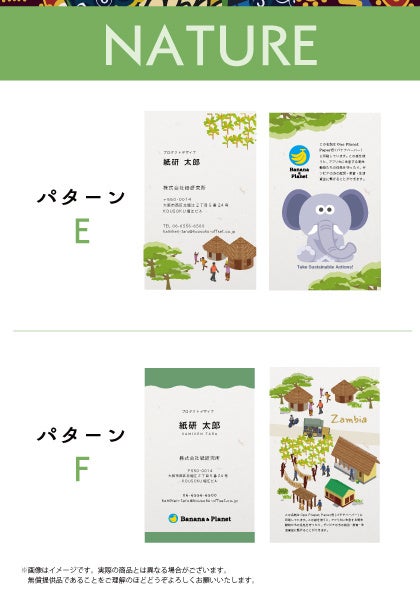 第1回募集は11月15日(金)開催の「ワンプラネット・ペーパー®フェス2024東京」にて。6種類のデザインからおひとつ選んでいただき、無償で名刺をご提供いたします。