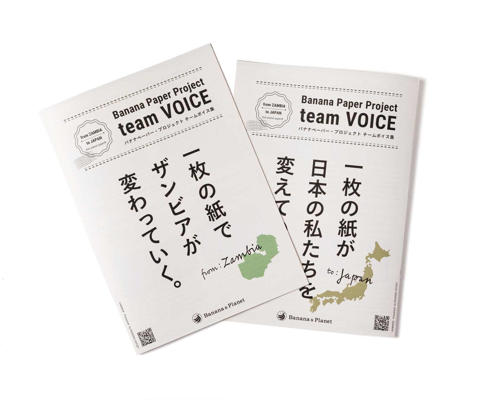 バナナペーパー工場のあるザンビア・エンフエ村で見かけた柄や、現地の挨拶言葉「こんにちは」を印字しています。