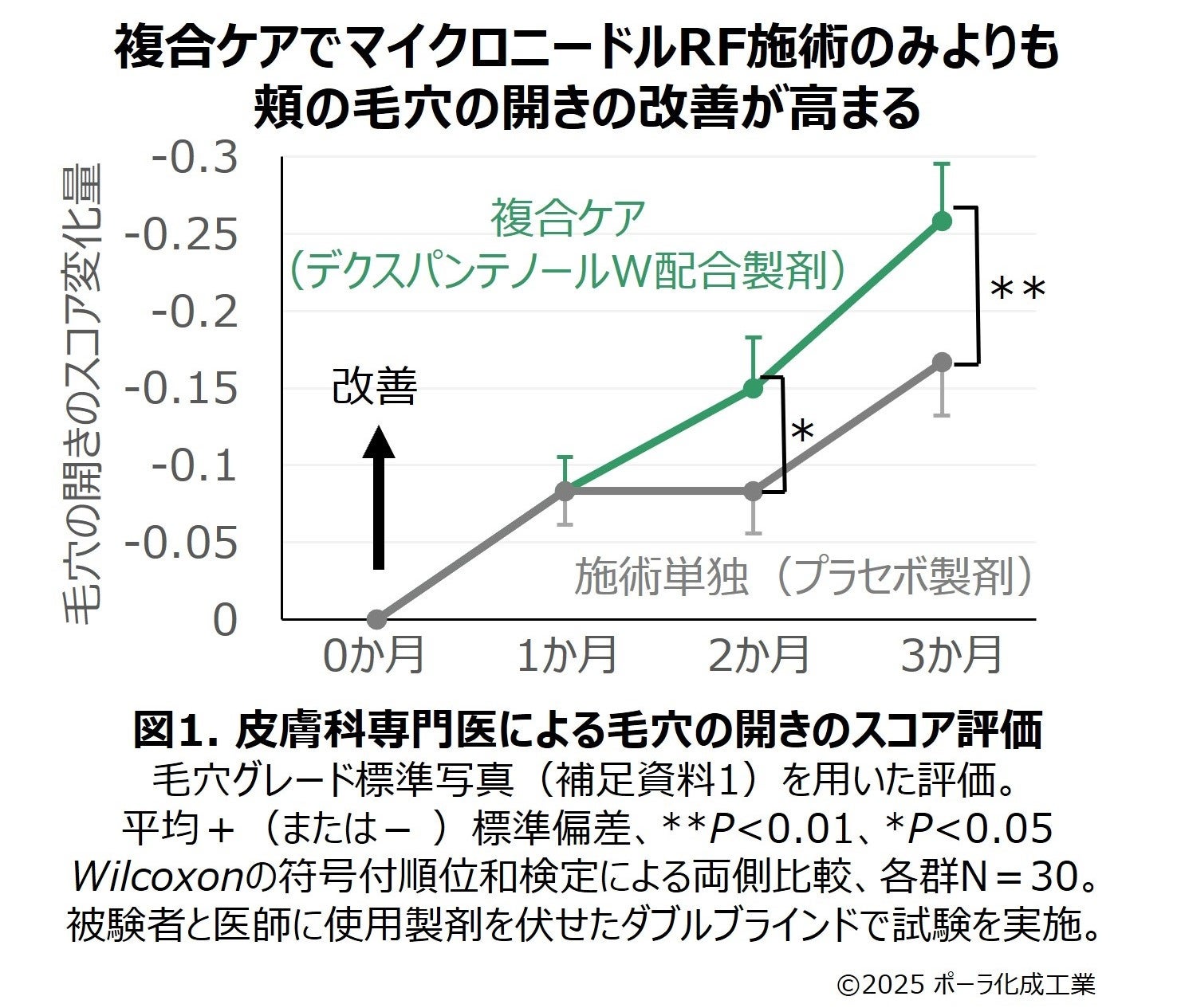 ポーラ・オルビスグループの研究・開発・生産を担うポーラ化成工業株式会社(本社:神奈川県横浜市、社長:片桐崇行)は、ALOOP CLINIC & LAB(東京都中央区、院長:山﨑研志)と共同で、以下の2点を確認しました。これにより美容医療施術に医薬部外品有効成分デクスパンテノールW(※1)のホームケアを適切に組み合わせた複合ケアは毛穴の開きのケアとして有用であることが示されました。