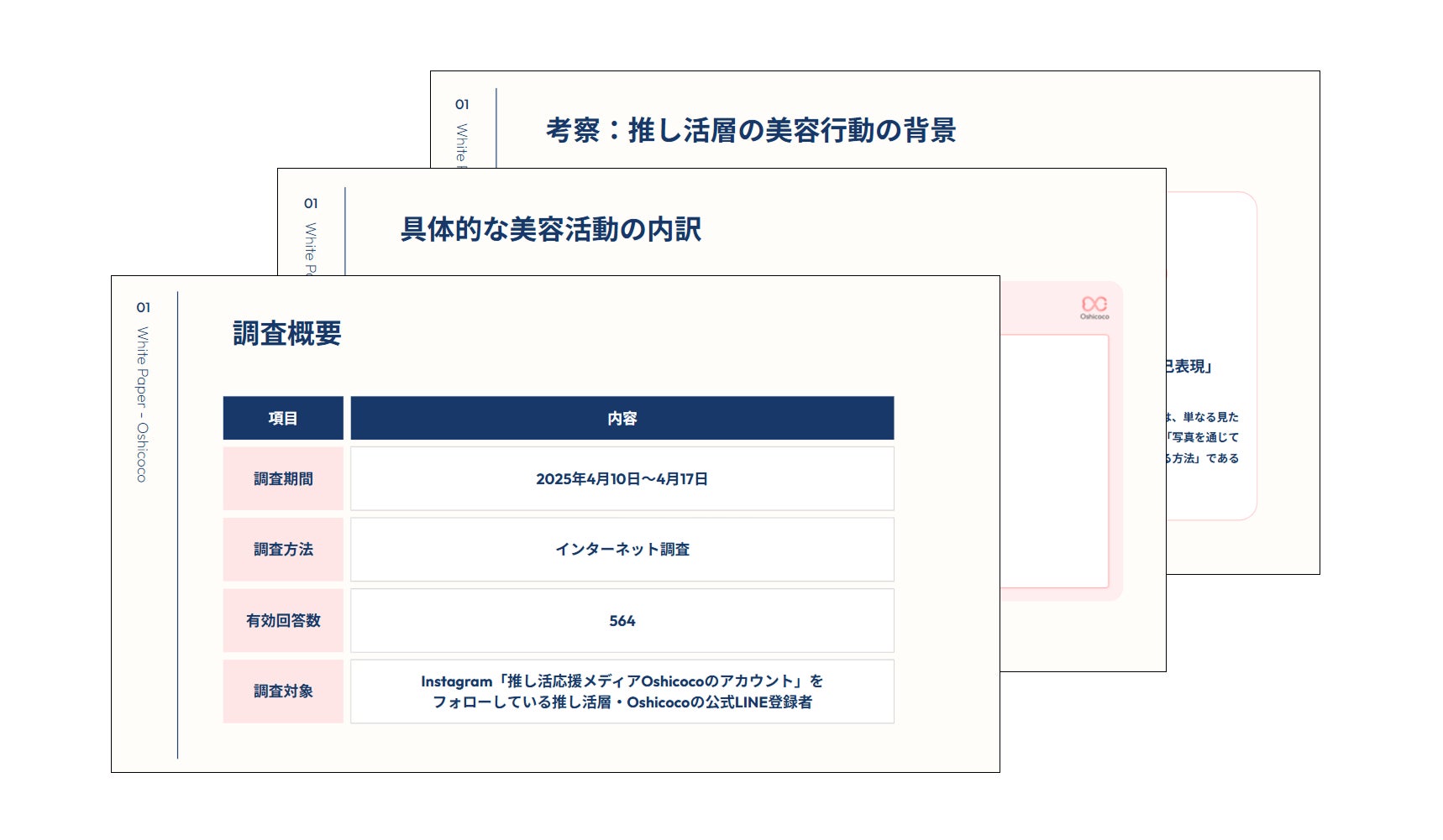約600万人の推し活コミュニティを活用した、Z世代・若年層向け調査サービス「推しペディア」を展開する株式会社Oshicocoは『推し活×美容に関する実態調査』を無料公開いたします。