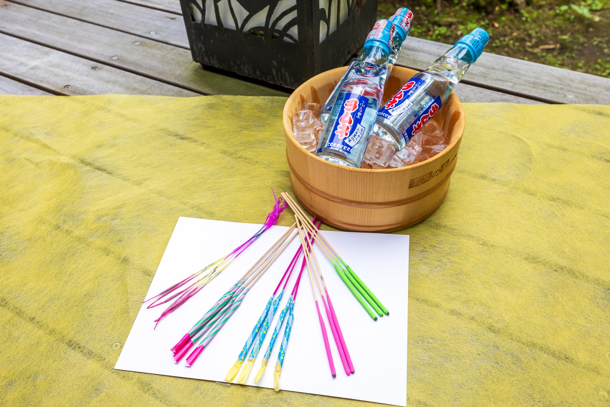 縁日では、冷たい飲料や手持ち花火の販売も行っております。涼しい飲み物で喉を潤しながら、手持ち花火で夏の夜をお楽しみください。