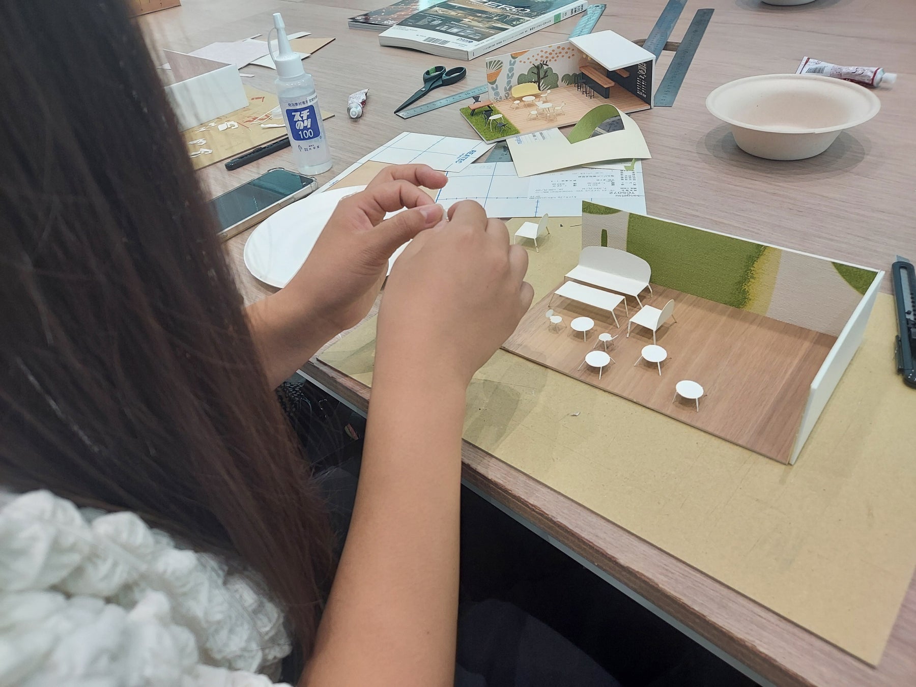 メインコンテンツとして、各領域によるワークショップや講義も開催。情報表現系の企画として写真からAI画像を生成する体験、グリーンバック合成の体験、モーションキャプチャコンテンツの紹介などがある。また、インテリア・プロダクト系の企画としてカフェの模型作り、木材を使ったメッセージスタンド作りなど、同大の各領域で学べることが体験できる様々な企画がある。