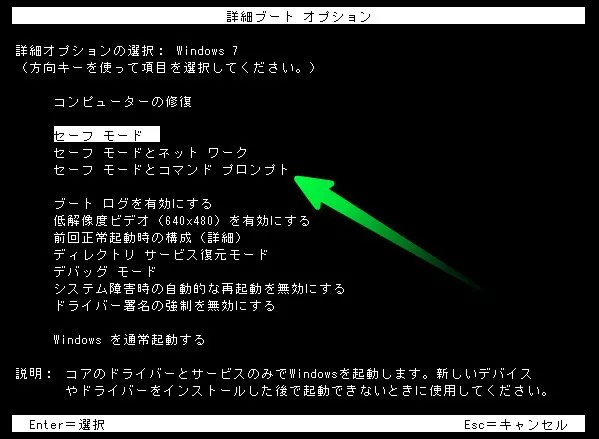 Step2:ブートメニューが表示されたら、「セーフ モードとコマンド プロンプト」を選択します。