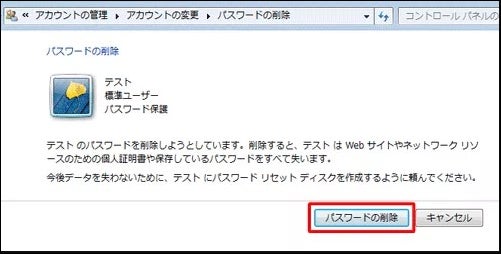 Step3:パスワードの削除に関するメッセージが表示されますので、「パスワードの削除」をクリックして完了です。