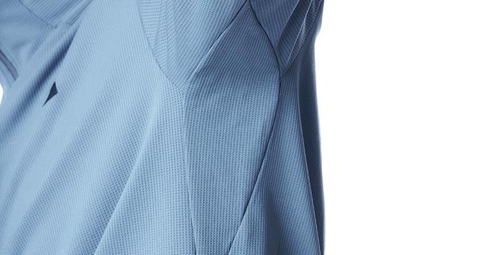 やや薄手の生地厚に加えて、独自の編み構造から生まれる優れた通気性を備えます。素早い汗処理との相乗効果により、夏の暑い時期でも蒸れにくく快適な衣服内環境を保つことが可能です。