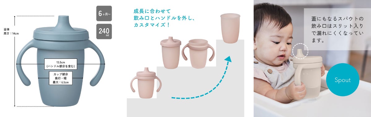 成長に合わせてスパウトの飲み口を外すとコップ飲みに切り替えることができます。