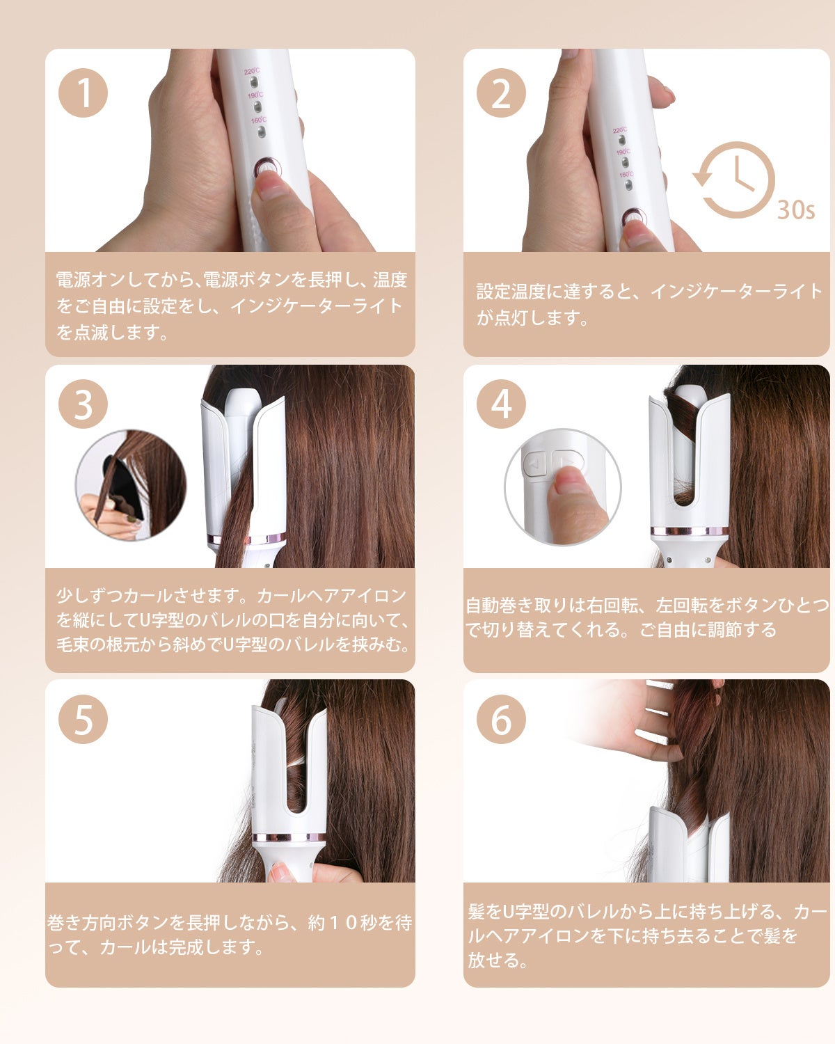 【自然なカール24時間キープ】市場のほかのオートヘアアイロンと違って、弊社はのヘアアイロンは植物性タンパク質保護技術を革新することによって、自然で明るいヘアスタイルを作ります。カールは24時間キープ可能です。