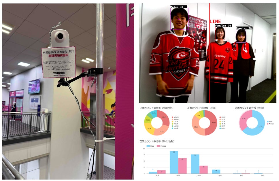 入場者の人数・性別・年代などのリアルタイム判別や、データ分析、グラフや表での視覚的な表現などを活用して、来場者の傾向を把握し、物販品・フードの品揃えの検討におけるAIカメラやデジタルデータの有効性を確認したり、来場者の視線からサイネージの効果を評価して広告内容の改善やサイネージの設置場所の検討につなげたりして、マーケティング施策の検証を進める予定です。
