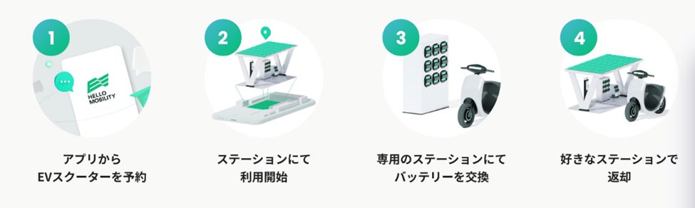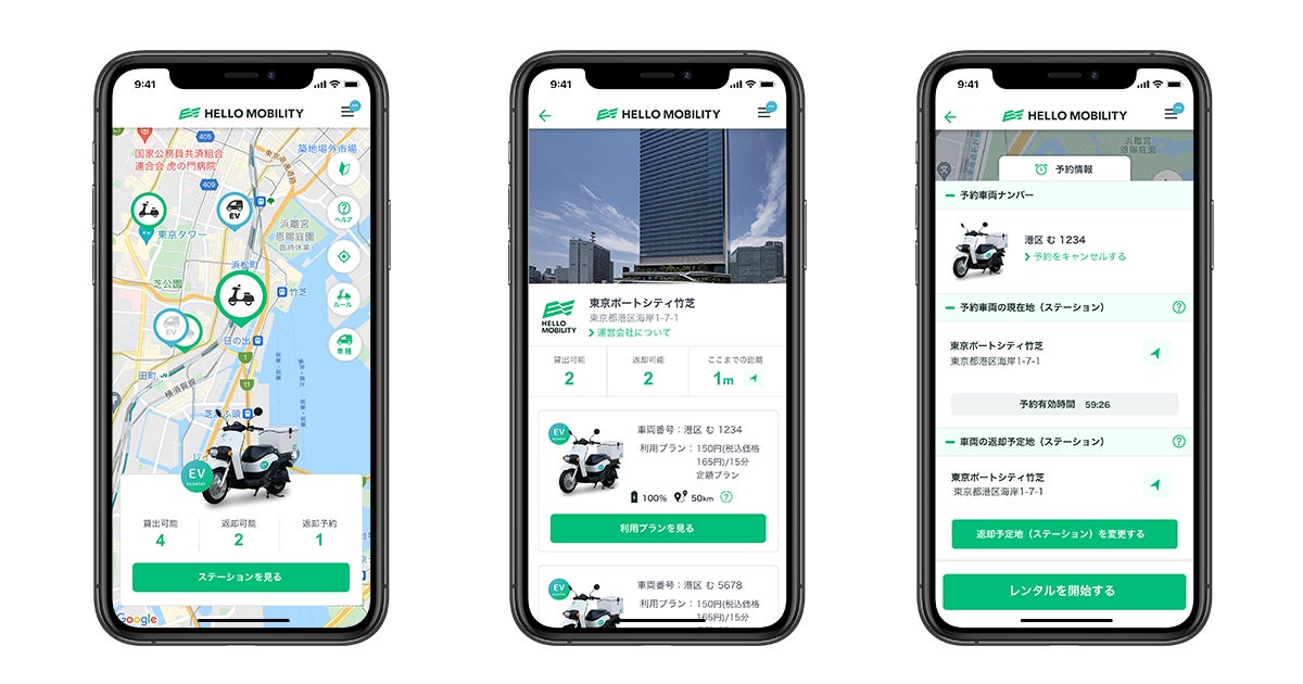 「HELLO MOBILITY」は15分から利用可能です。全車両の利用料金にはバッテリーの交換料金および各種損害保険の料金が含まれています※4。