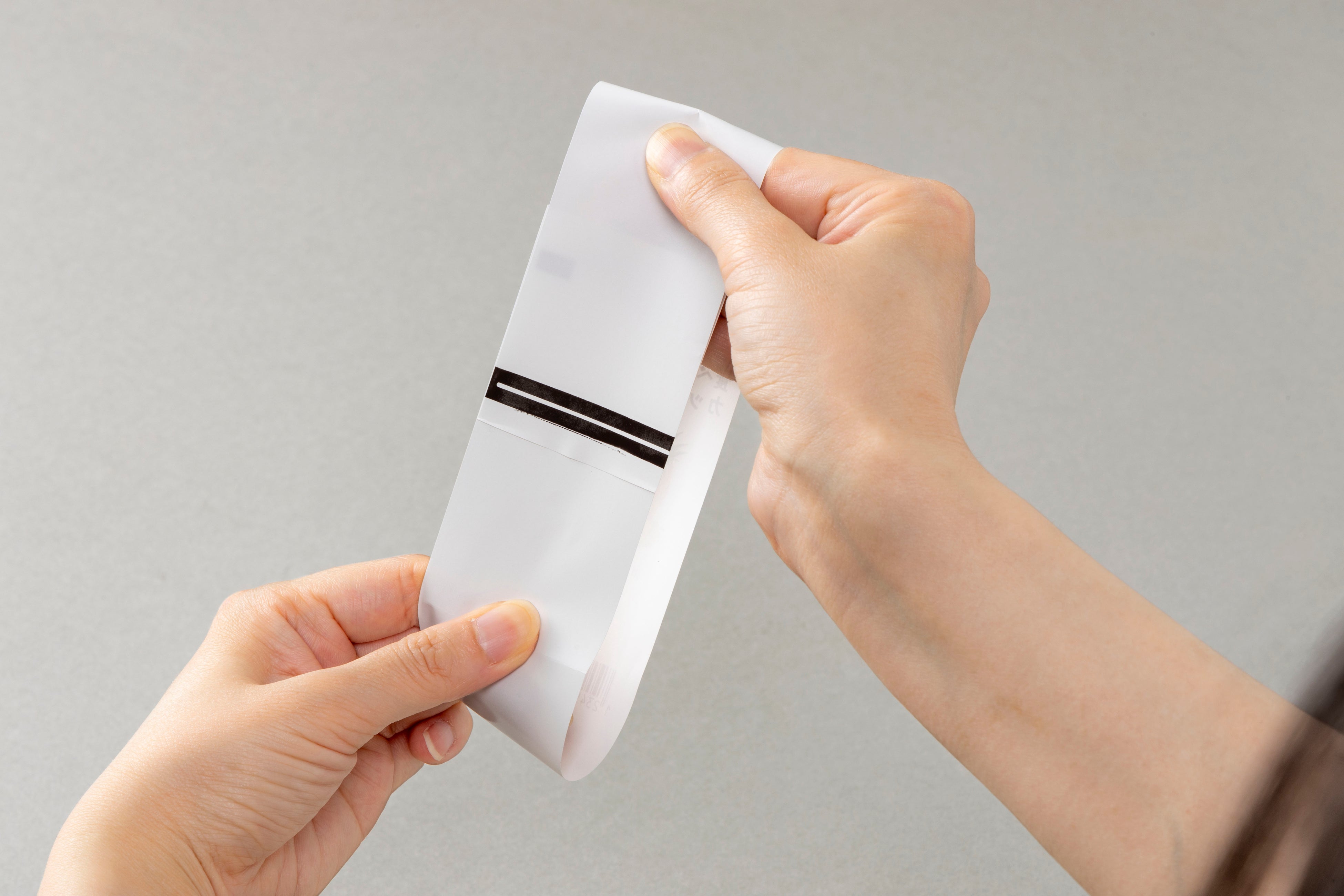 本製品は、上下方向に引っ張っても緩まない強固な接着性があることで、運送時や店頭での商品陳列時でもしっかりと結束できます。開封時には、重なっている一枚を接着時と反対方向に引っ張ることで容易に剥がすことができ、開梱が非常に簡単です。プラスチックフィルムは手で簡単にちぎることができませんが、本製品は紙製のため、任意の箇所からちぎることができます。さまざまな用途に応じた使いやすさも大きなメリットです。