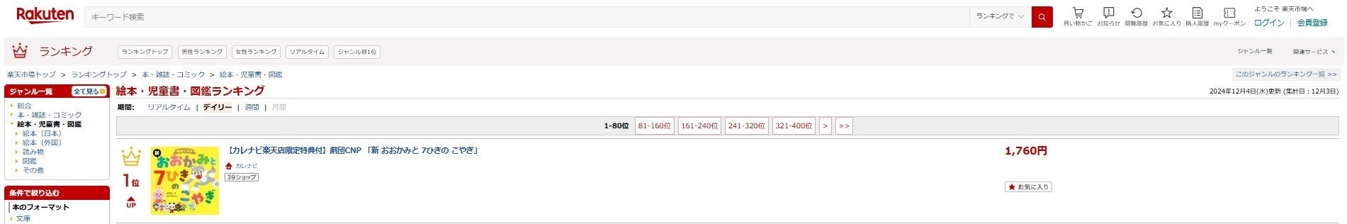 株式会社ハゴロモ(本社:東京都千代田区、代表:橘壮太郎)は、絵本『劇団CNP 新おおかみと7ひきの子やぎ』(2025年1月16日発売予定)の予約を2024年12月3日正午に開始し、楽天ランキング1位(デイリー、ジャンル「絵本・児童書・図鑑」2024年12月4日(水)更新(集計日:12月3日)を獲得したことをお知らせいたします。