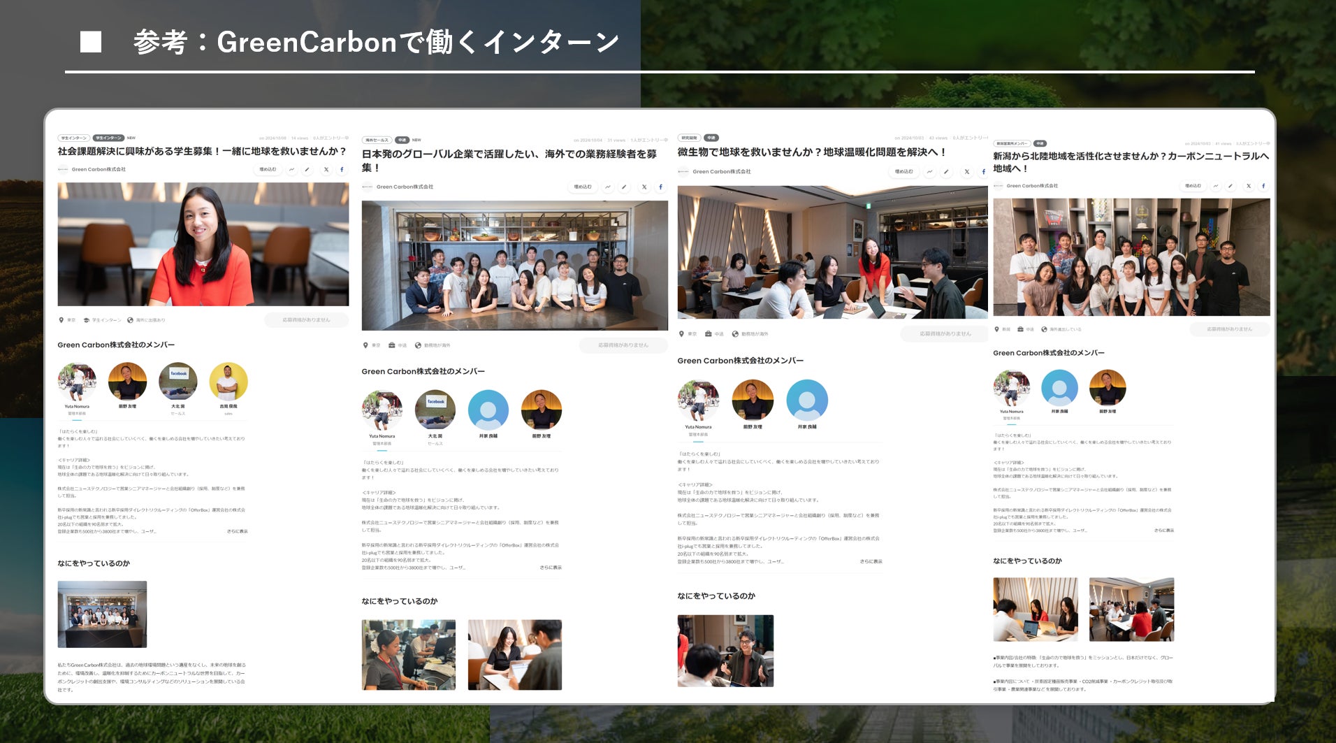 ○Green Carbonで働く社員・インターンインタビューはこちら