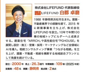 本セミナーでは、株式会社LIFEFUNDの白都社長に登壇いただき、静岡県浜松市トップシェアビルダーが実践する「高収益・多角化戦略」と「AI戦略」の取り組みについて解説していただきます。