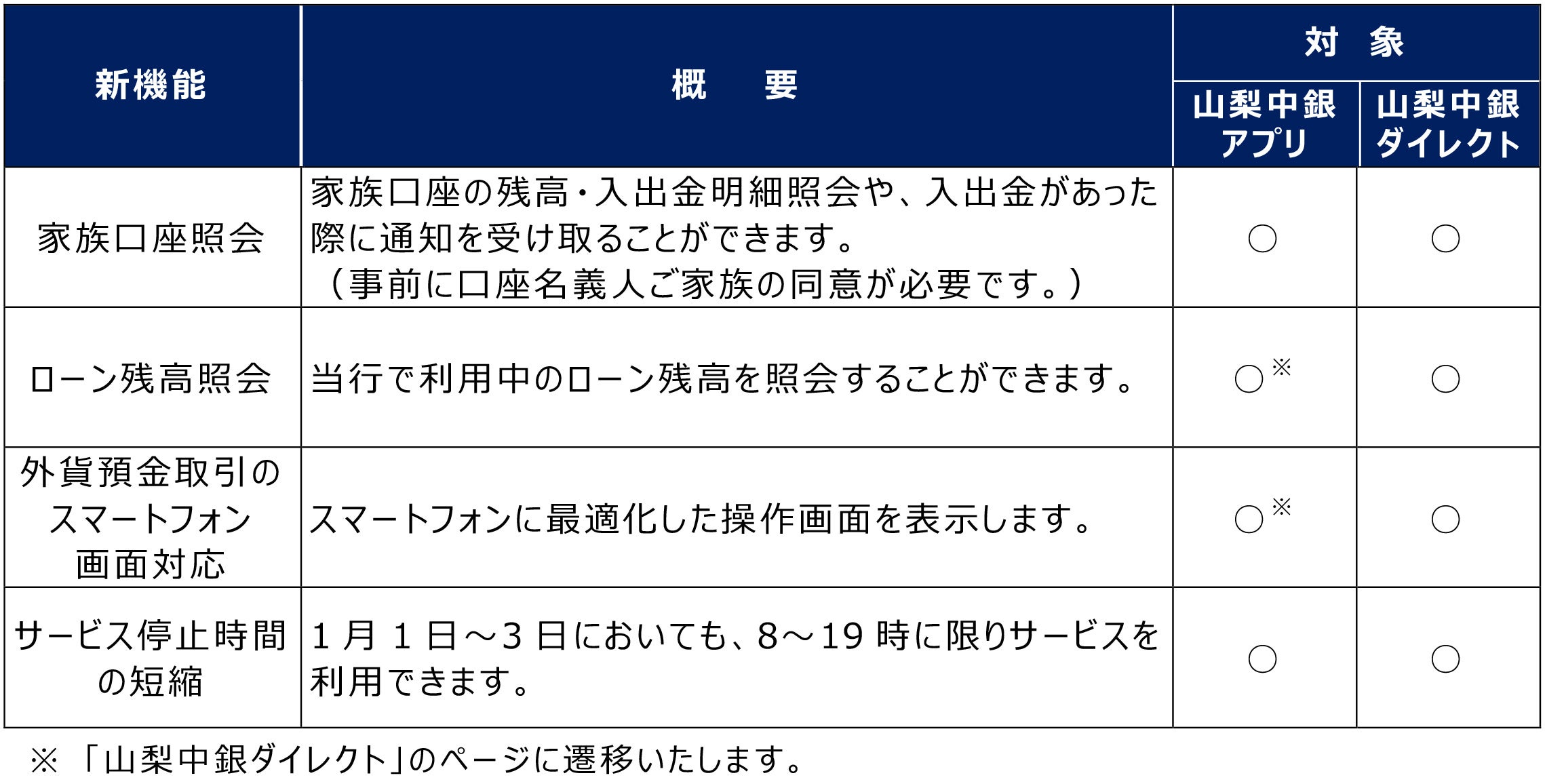 個人向けスマートフォンアプリ「山梨中銀アプリ」およびインターネットバンキング「山梨中銀ダイレクト」への新たな機能追加について