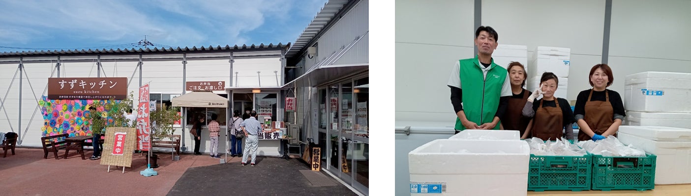 すずキッチンは震災後に地域の飲食店が協力し、2024年の9月設立したお弁当販売の拠点。イートインの「すずなり食堂」を併設し、被災者の生活を支える重要な役割を担っています。