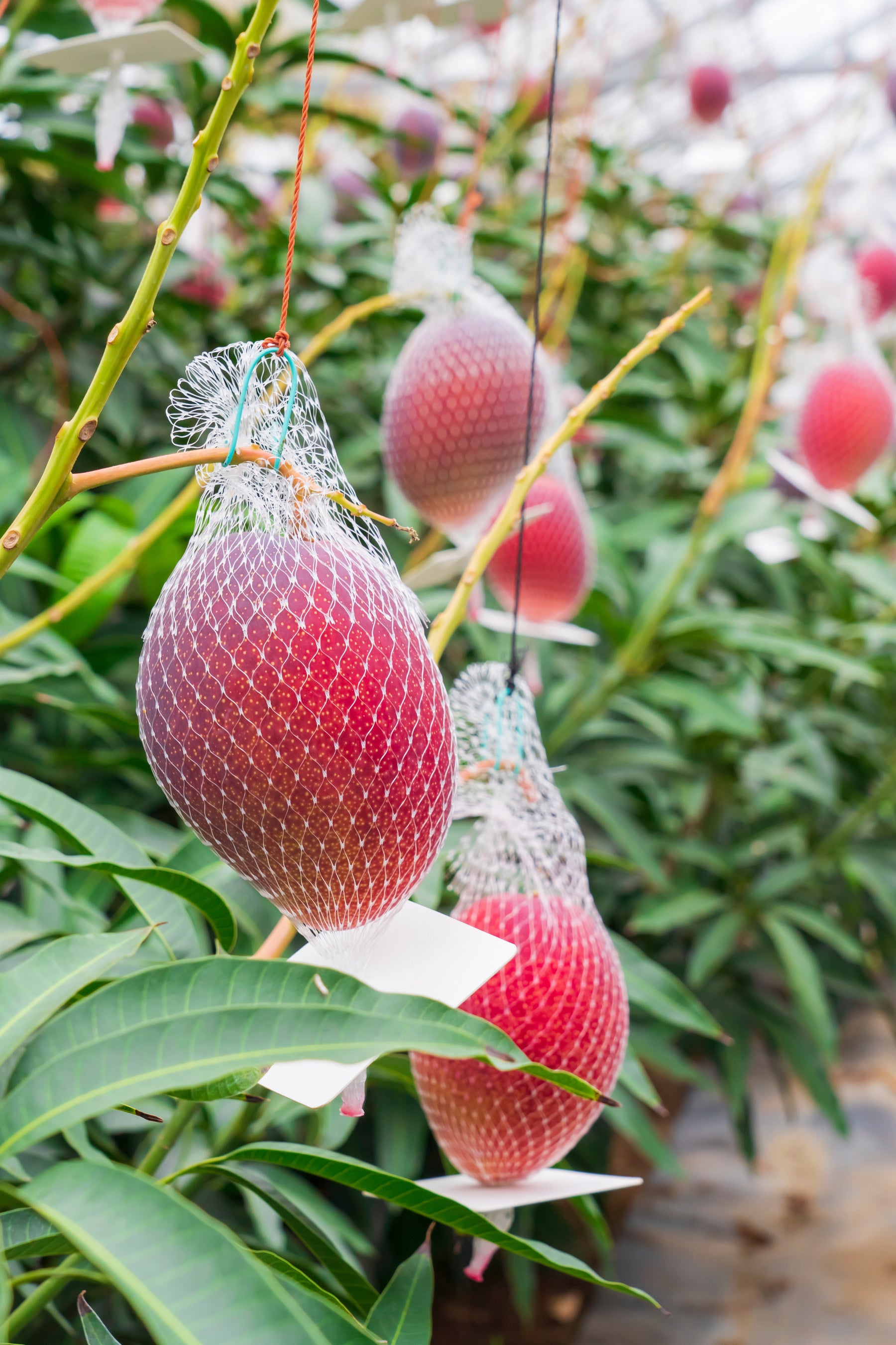 マンゴーは元々温暖な気候で育つ果実のため、最適な生育環境になるように栽培しています。ポトリと枝から落ちる時が完熟のサインになるため、1玉ずつネットを張り落とさないように収穫します。丹精込め育て上げた、『完熟マンゴー』。最高に美味しい季節に、ぜひご賞味ください。