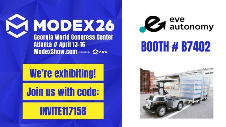 株式会社eve autonomy(イヴ・オートノミー、本社:静岡県磐田市、代表取締役CEO:星野亮介、以下「eve autonomy」)は、4月13日(月)から 4月16 日(木)まで、米国ジョージア州アトランタのGeorgia World Congress Centerにて開催される、製造・物流業界向け北米最大級のトレードショー「MODEX 2026」に出展いたします。本展示では、当社の主力サービスである「eve auto®」の自動運転車両の実機展示を行い、工場および物流施設における屋内外の搬送をシームレスに自動化するソリューションをご紹介します。