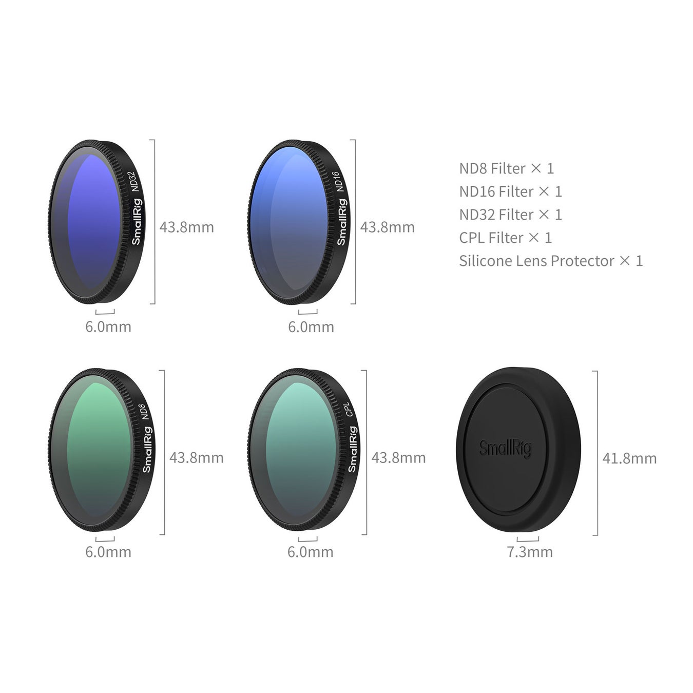 昼間撮影(ND8)、中間光(ND16)、強光・長時間露波(ND32)、反射除去(CPL)と用途を使い分けることで、風景から水中撮影まで豊かな映像表現を実現。付属のシリコンレンズカバーで保護機能も強化されています。