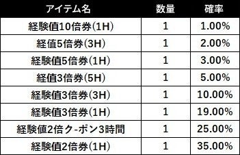 経験値獲得を補助するアイテムがランダムで手に入るお得なBOX。