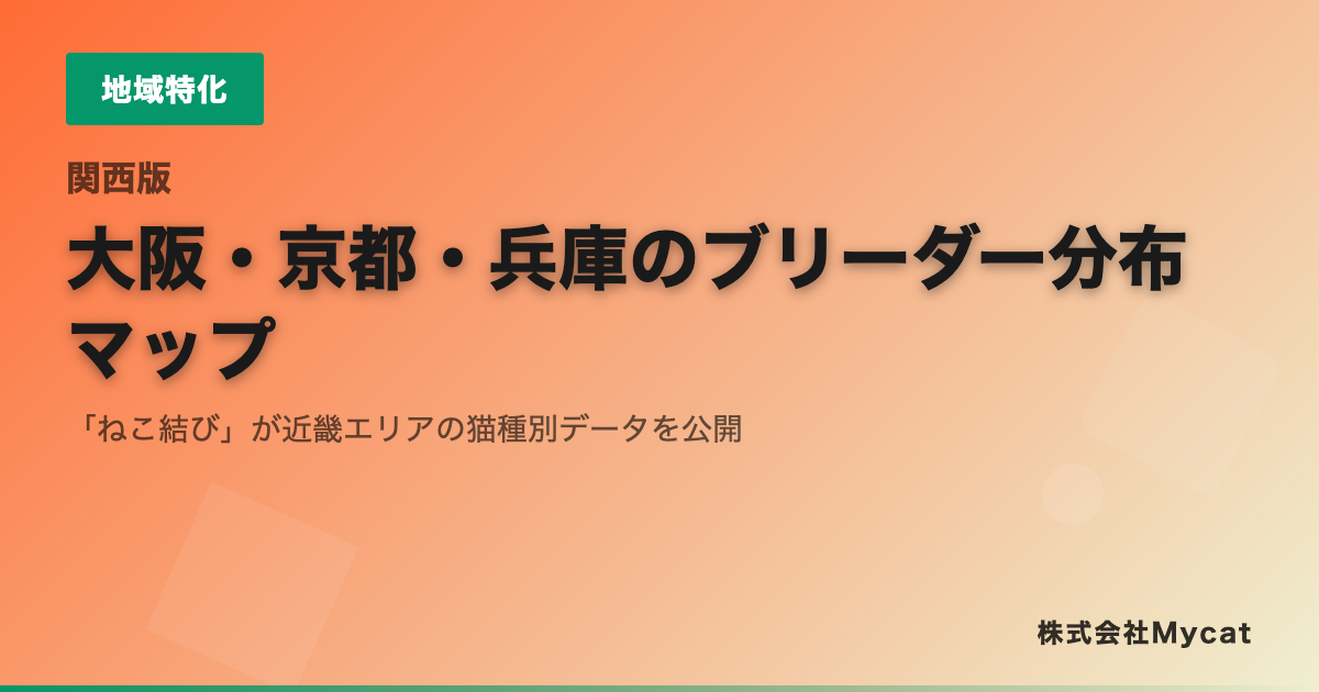 株式会社Mycat(本社:東京都目黒区)は、AI猫ブリーダーマッチングサービス「ねこ結び」(https://nekomusubi.xyz)において、近畿エリア(大阪府・京都府・兵庫県)に対応したブリーダー検索機能を追加したことをお知らせいたします。