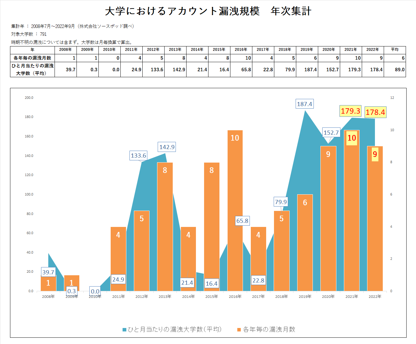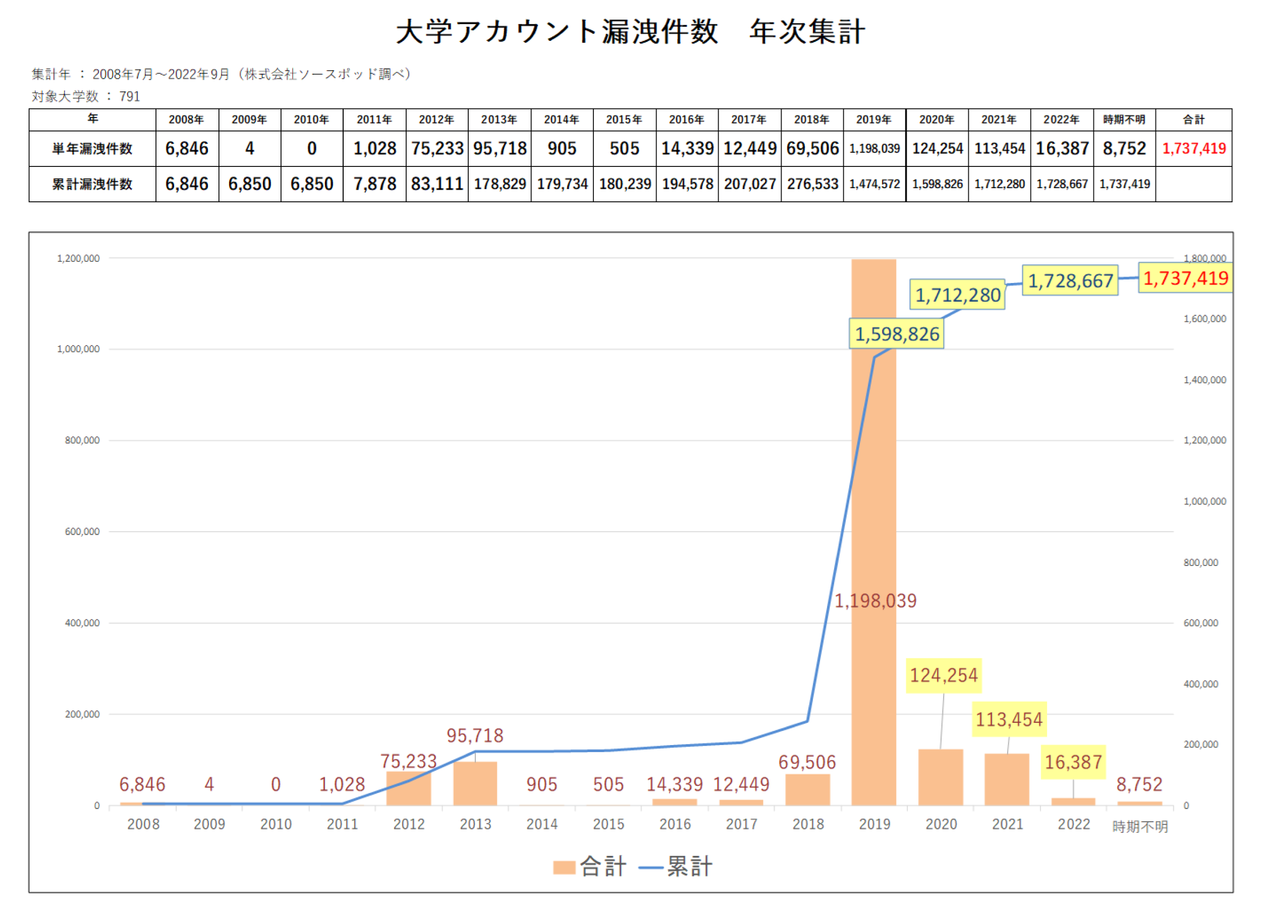 【レポート】国内791大学、アカウント漏洩累計173万件に。2022年は歴代最高の漏洩頻度・被害規模に到達見込み。