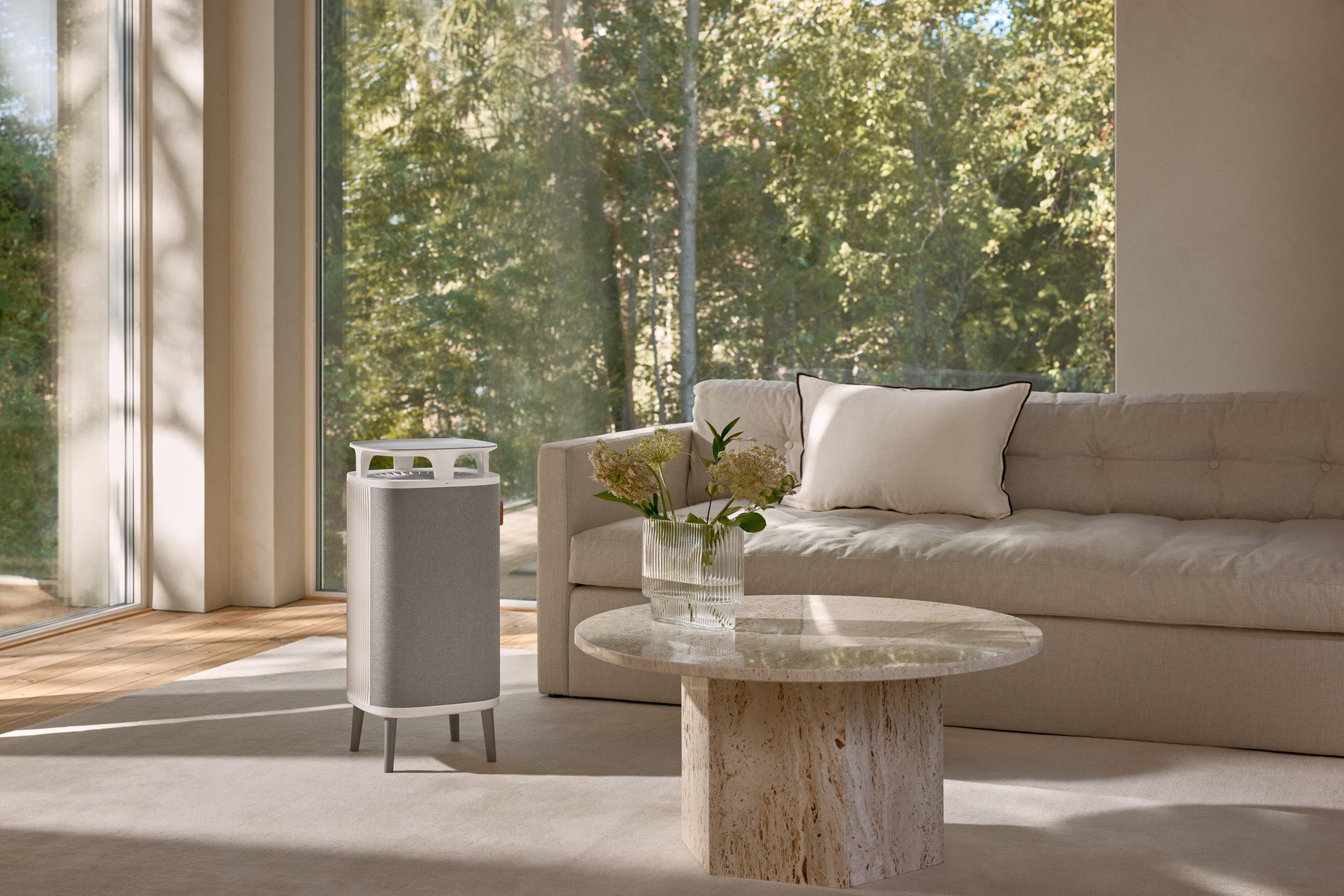 ハウスダストの除去にフォーカスした「Blueair DustMagnet」は、上下2カ所の吸引口からホコリや花粉などのハウスダストを吸引。特に底面に設けられた吸引口は、ホコリが漂いやすい床上30cmのハウスダストゾーンに働きかけ、ペットの毛や花粉、ダニ、ホコリなどのハウスダストを効率的に除去します。優れた空気清浄機でありながら、家具×家電の“ステルス家電”としても注目されており、サイドテーブルとしてもお使いいただけます。北欧家具のような機能美が評価され、国内外の権威あるデザイン賞を受賞しています。本体カラーはシックなグレーとマットホワイトの2色展開。