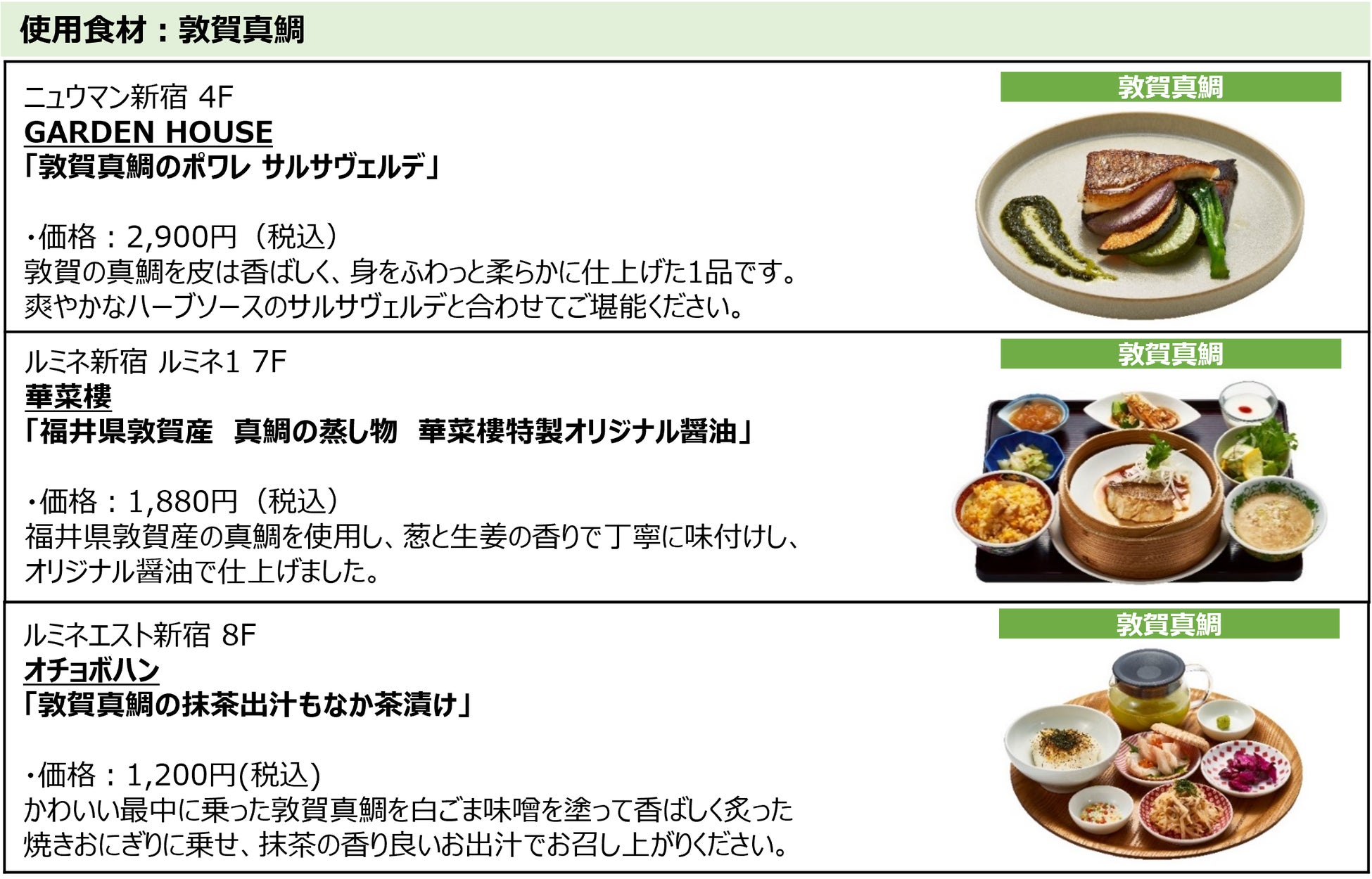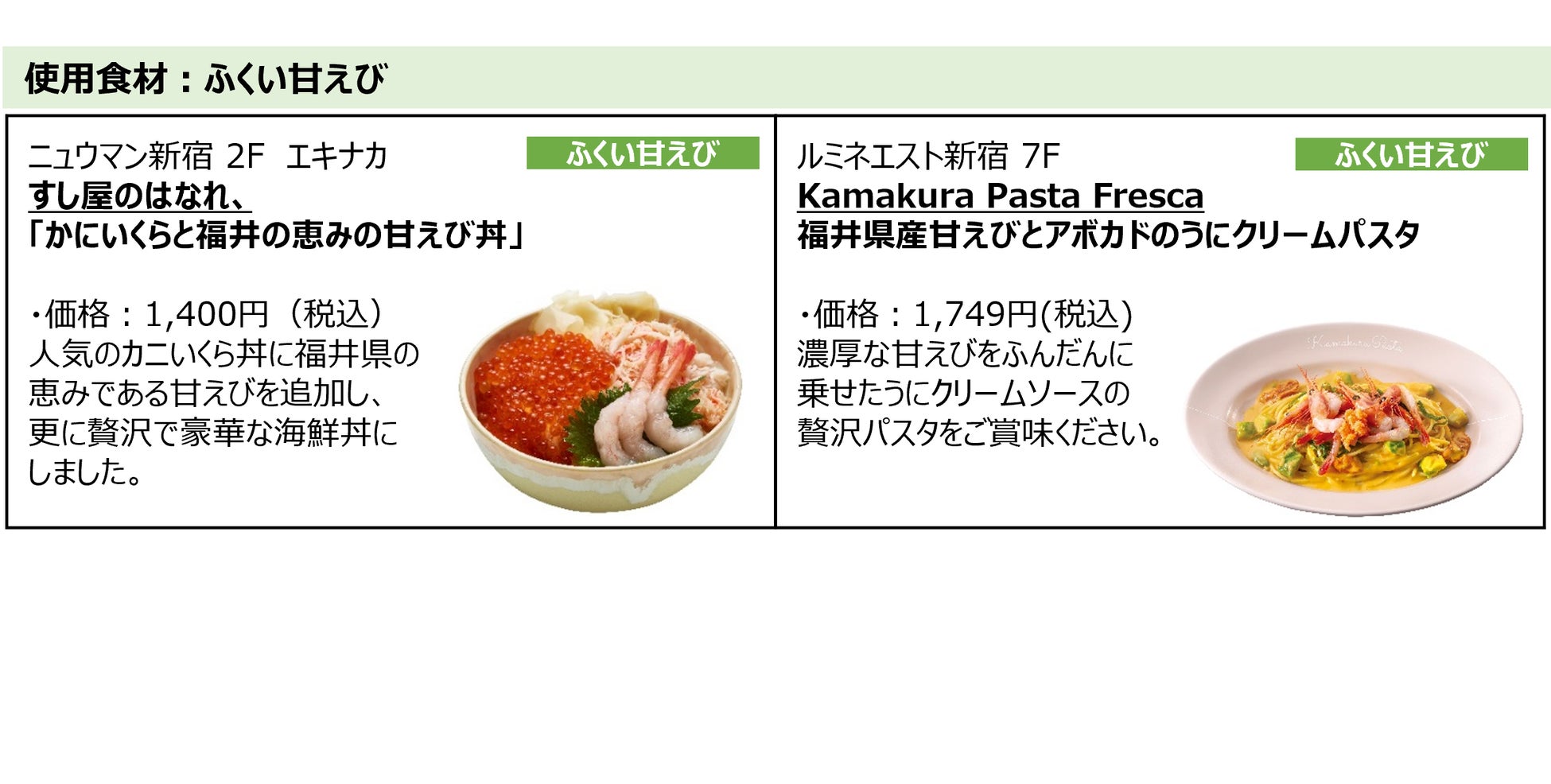 初開催!ルミネ新宿3館「福井 FOOD FAIR」福井のブランド水産物を含む7種の食材を使った、贅沢な期間限定メニューが18ショップ21種類登場