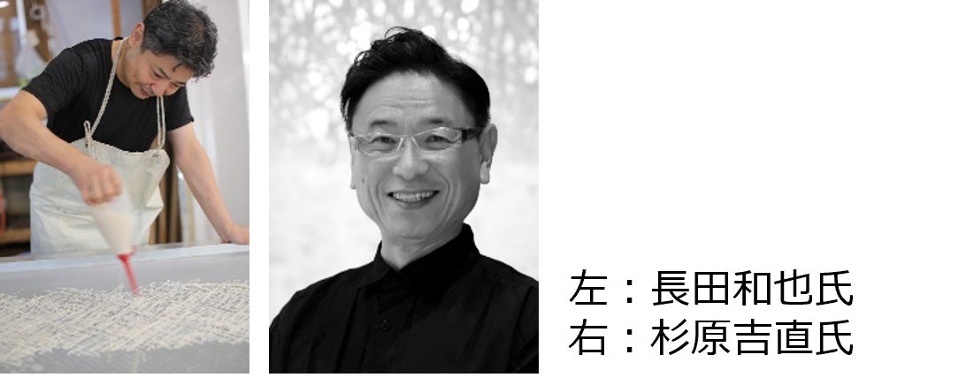 800°DEGREES NEAPOLITAN PIZZERIA では、和紙ソムリエとして越前和紙の文化や歴史の魅力を国内外に発信し続けている杉原吉直氏と伝統工芸士である長田和也氏が繰り出す技法「飛龍」を用いたダイナミックな和紙アートをガラス面に装飾します。
