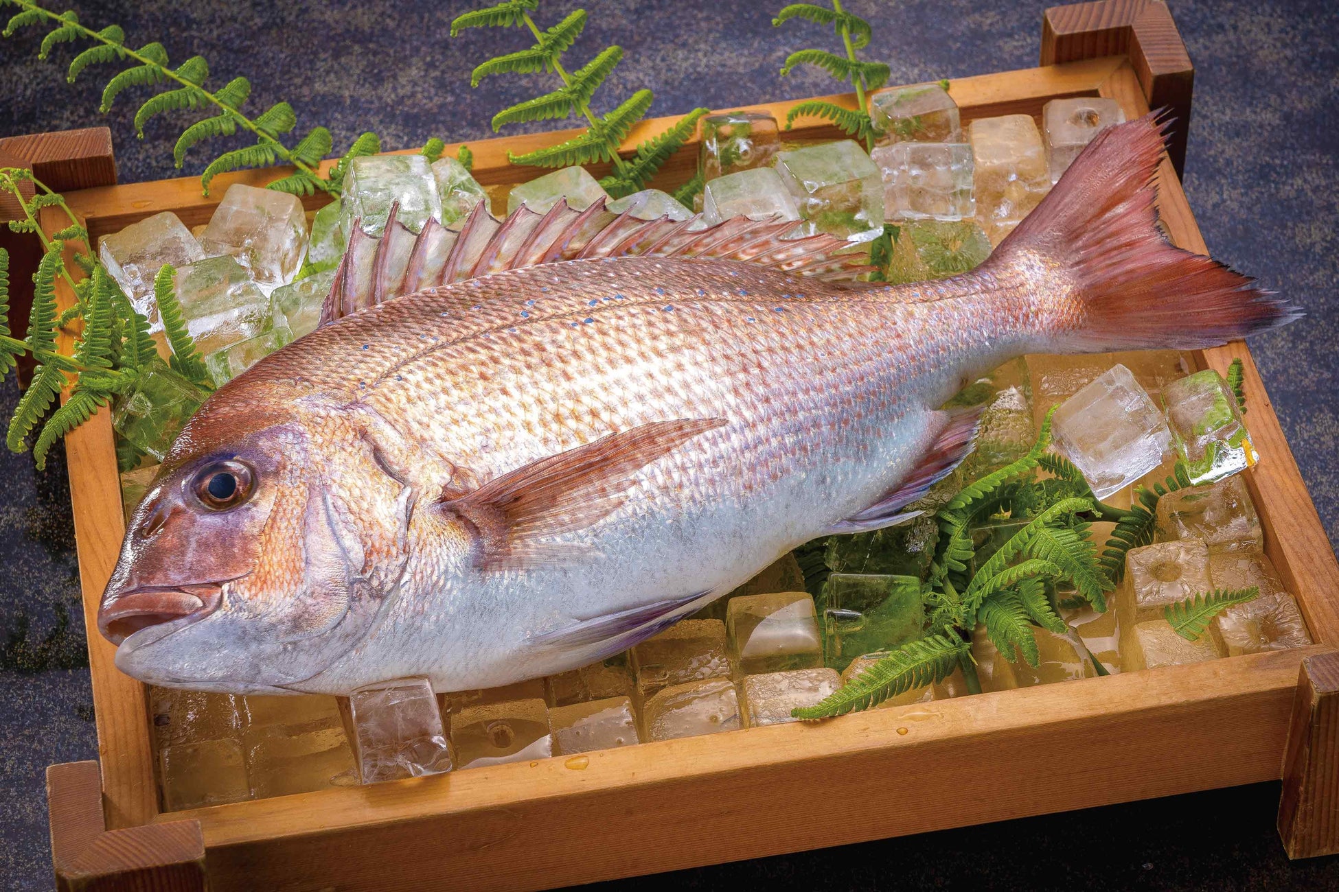 「敦賀真鯛」とは福井県内で養殖されている最高ランクの真鯛です。冬の日本海という過酷な環境下で養殖されている敦賀真鯛は、急激な水温変化にも耐え抜く強い生命力を持っています。また、カニ殻など栄養価の高い飼料を与えており、身質、魚体の色味、脂の乗りが非常に良く、歯応え、歯触りの良さと、さっぱりとした味わいが特徴です。