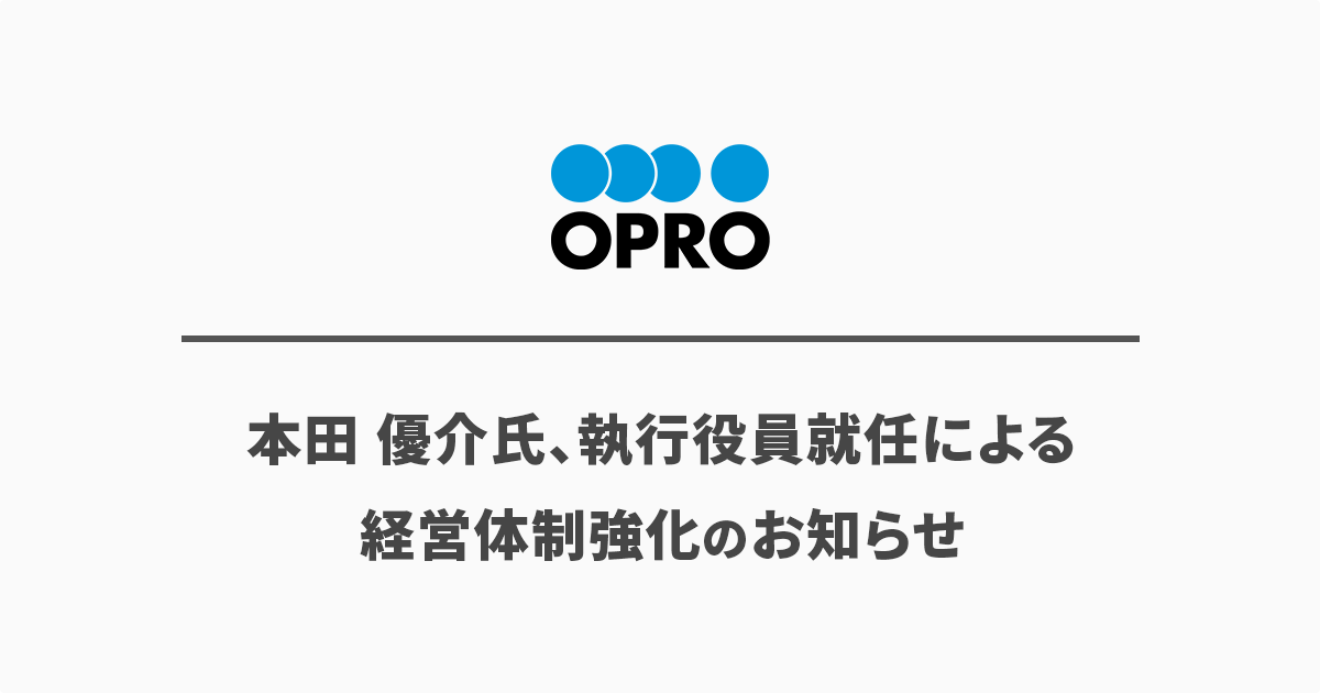 本田氏がこれまで培ってきた営業領域での高い専門性とマネジメント経験は、オプロの事業成長と市場競争力強化に不可欠な力になると確信しています。新体制のもと、積極的に挑戦し続け、企業価値の向上を追求してまいります。