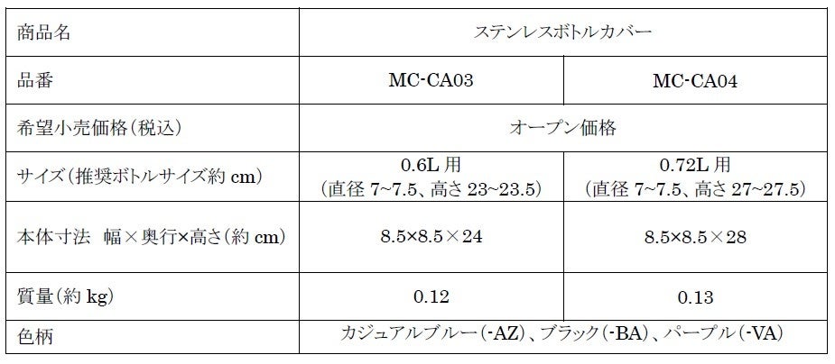 大容量マグにぴったりなステンレスボトルカバーMC-CA型を同時発売します。