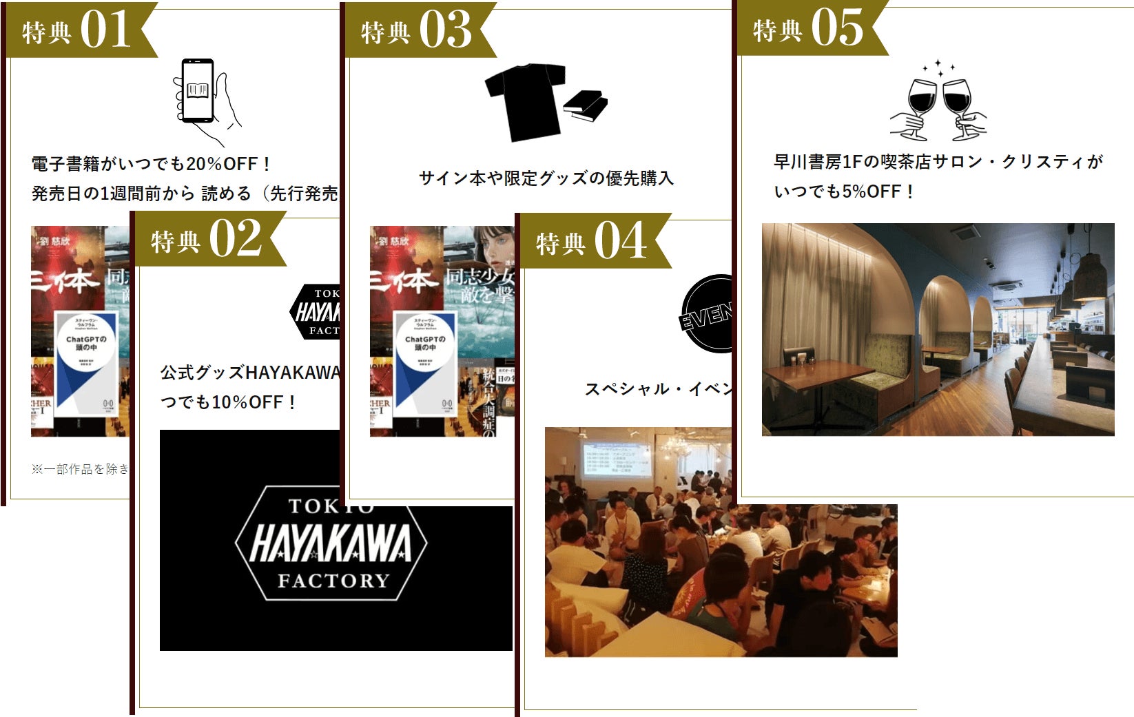 今回のサイト統合リニューアルより、ハヤカワ・オンラインに5つの有料会員特典が導入されました。