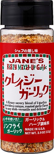 クレイジーガーリックは、ノンフライなのに、カリカリに揚げたような香ばしいガーリックに、まろやかな味わいの岩塩、オニオン、ブラックペッパー、セロリシード、タイム、オレガノなどをブレンド。