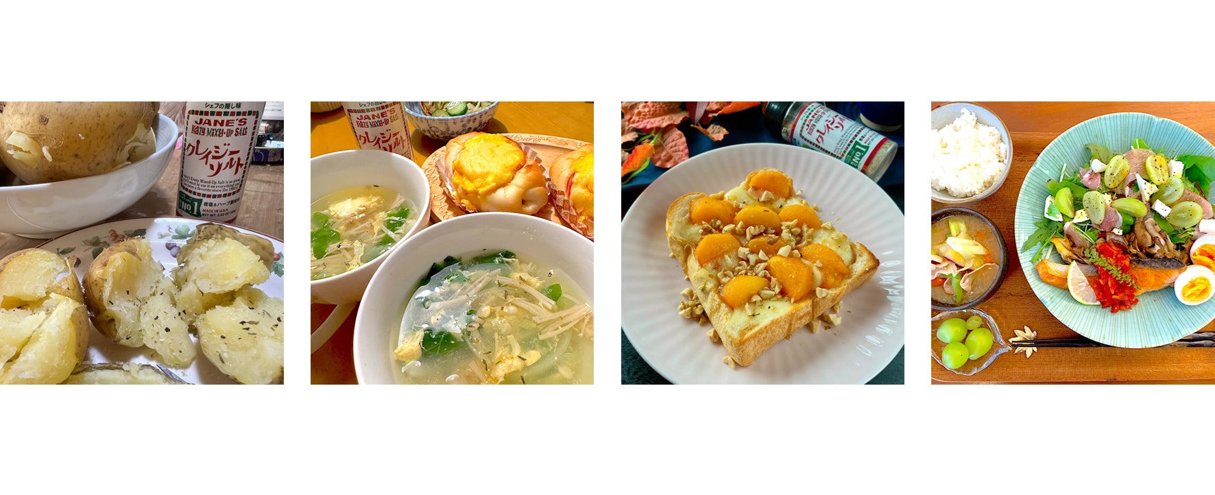 クレイジーソルトの香りが、焼きあがったジャガイモの湯気とともに香ってくるのね。シンプルに調理したところに使うのが、いちばん香りとおいしさが引き立つよねぇ
