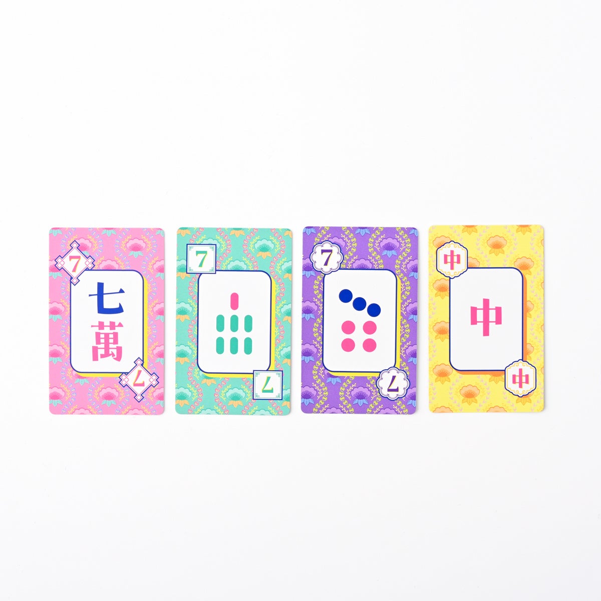 ・麻雀の絵柄を知らない人でも一緒に楽しめるように、色と数字だけで種類がわかるようになっています。