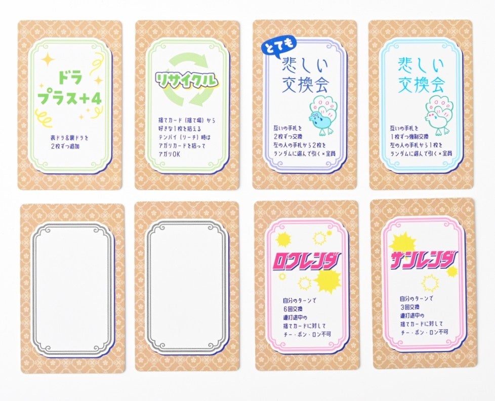 通常4人の麻雀が、最大6人まで楽しめるというのも大きな特徴です。麻雀好きの人にとっても、2~6人で、カードだけで手軽に麻雀が楽しめます。