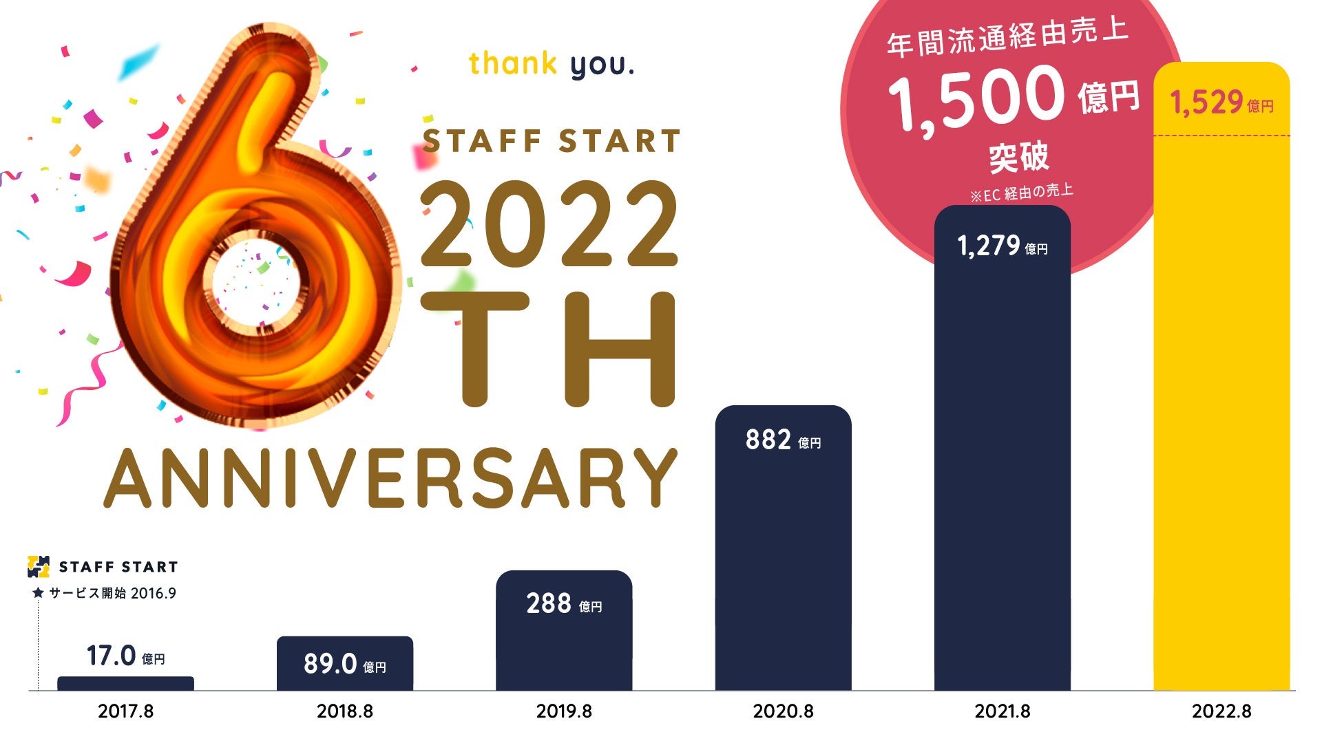 スタッフDXの「STAFF START」、流通経由売上1529億円を突破。サービス開始6周年を迎え、スタッフは18万人超に