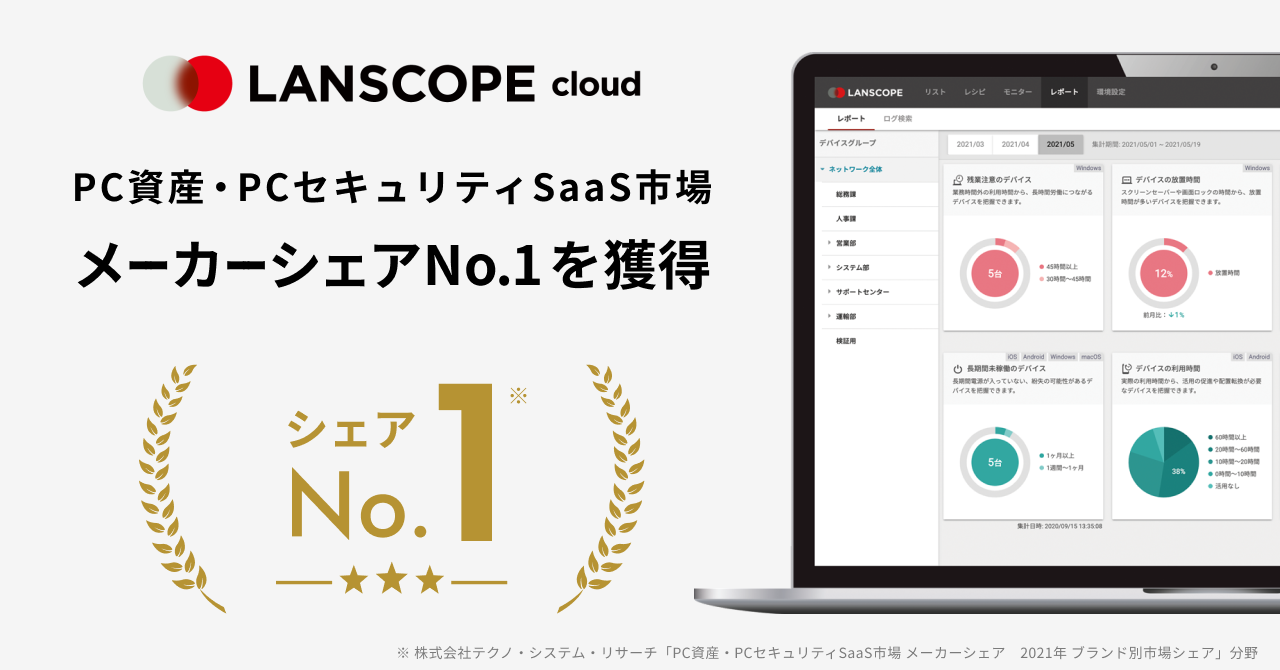 エムオーテックス株式会社(本社:大阪市淀川区、代表取締役社長:宮崎吉朗、以下MOTEX)のクラウドIT資産管理 「LANSCOPE クラウド版」が、株式会社テクノ・システム・リサーチが2022年3月に発表した「2021-2022年版 エンドポイント管理市場のマーケティング分析」の「PC資産・PCセキュリティSaaS市場 メーカーシェア 2021年 ブランド別市場シェア」分野において、市場シェア23%でトップシェアを獲得したことを発表します。