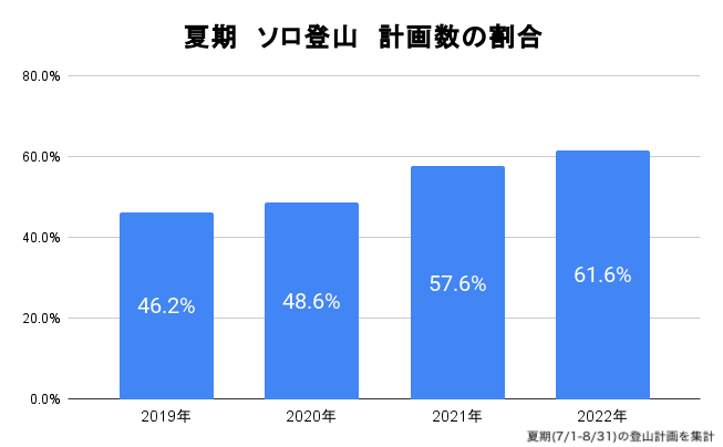 ◆ソロ登山の計画件数の割合は、コロナ前と比較しても増加傾向。