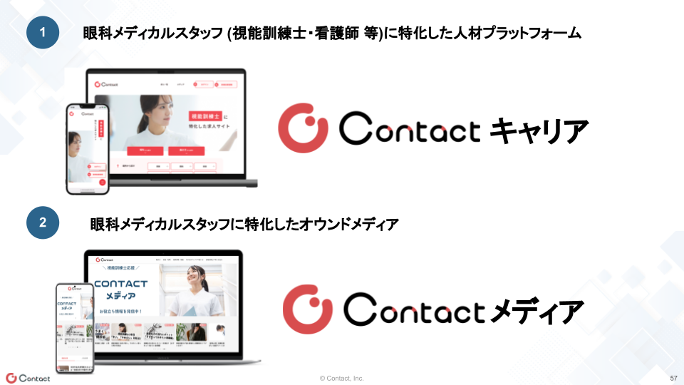 同社は、眼科に特化した求人プラットフォーム「Contactキャリア」(https://contact.ne.jp)及びオウンドメディア「Contactメディア」(https://contact.ne.jp/media)を開発・運営し、眼科医と眼科メディカルスタッフ(視能訓練士, 看護師等)を繋ぐプラットフォームに取り組む信州発スタートアップです。眼科専門の検査技師である「視能訓練士」は、業界内で約2.3万人不足(同社調べ)しており採用ニーズが高まっていると言われています。その一方で、視能訓練士がインターネット等で閲覧できる求人情報が乏しく、就職活動が困難な状況にあります。同社は、眼科医と視能訓練士が勤務先に満足し、働ける社会を目指しています。