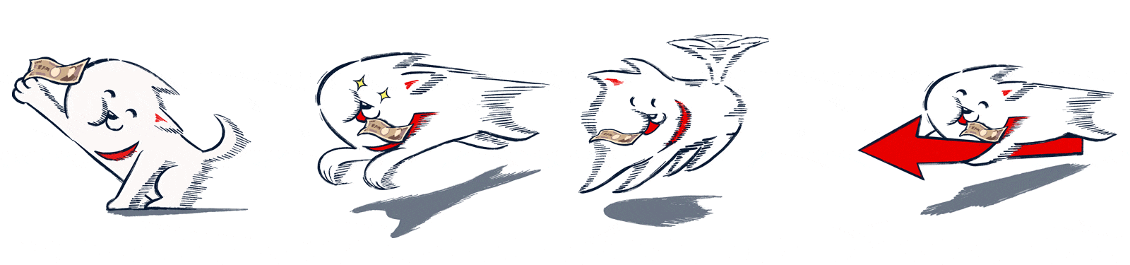 マッハバイトでは、アルバイトの採用が決まったユーザー全員に、最大1万円の採用お祝い金「マッハボーナス」を進呈しています。マッハワンコは、アルバイトが決まった人にマッハボーナスをマッハで届けることに喜びを感じています。