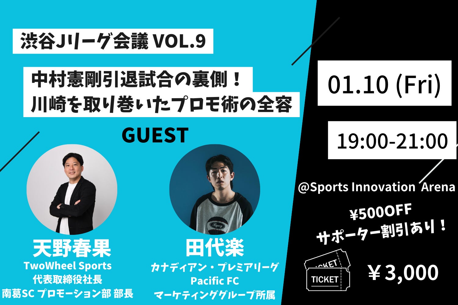 株式会社Link Sports(本社:東京都渋谷区、 代表取締役 CEO:小泉真也)併設のイベントスペース『Sports Innovation Arena』にて定期開催中のイベント「渋谷Jリーグ会議 vol.9」の詳細が決定いたしました。