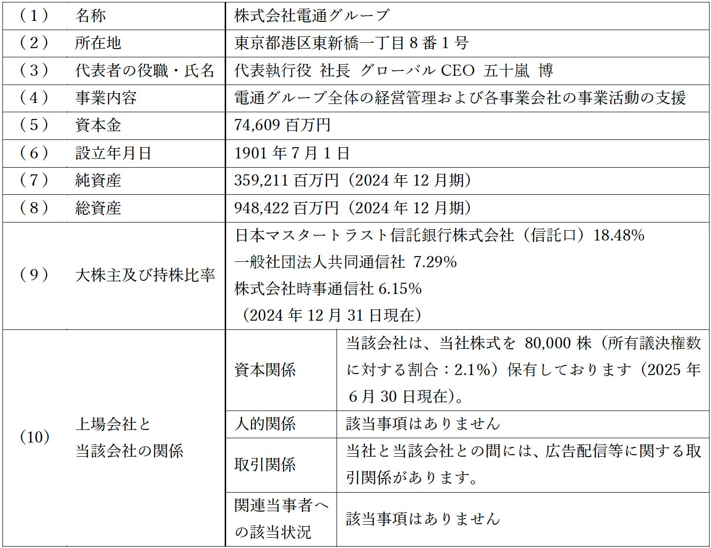 当社は、2026年2月6日開催の取締役会において、以下のとおり、位置情報データプラットフォーム「プロファイルパスポート」を展開する株式会社ブログウォッチャー(以下「ブログウォッチャー」)の株式を取得し、完全子会社化すること(以下「本件」)を決議いたしましたので、お知らせいたします。