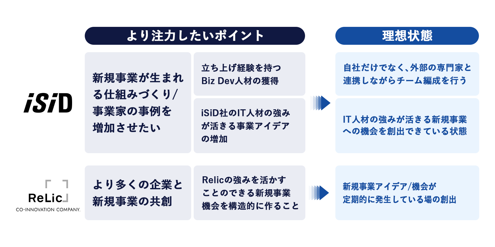 第1号の導入企業であるISIDにおいても、かねてよりボトムアップ型の新規事業創出プログラムを通じた新規事業開発を行うなど、積極的な事業開発の取り組みを行っていますが、事業アイデアを事業として昇華させるフェーズにさらに注力し、そのスピードを加速することで、より多発的・連続的な事業開発を実現していきたいという背景から、今回の本プログラムの導入及び事業共創プログラム「THEX」の組成に至りました。