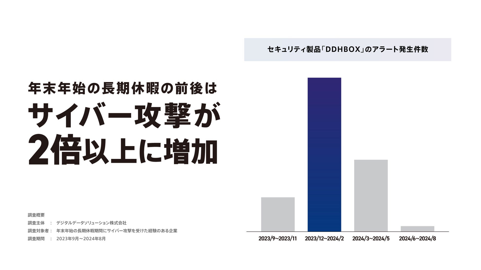 <年末年始の長期休暇の前後は、サイバー攻撃が2倍以上に増加>デジタルデータソリューションが年末年始に潜むサイバーセキュリティリスクの被害調査を発表