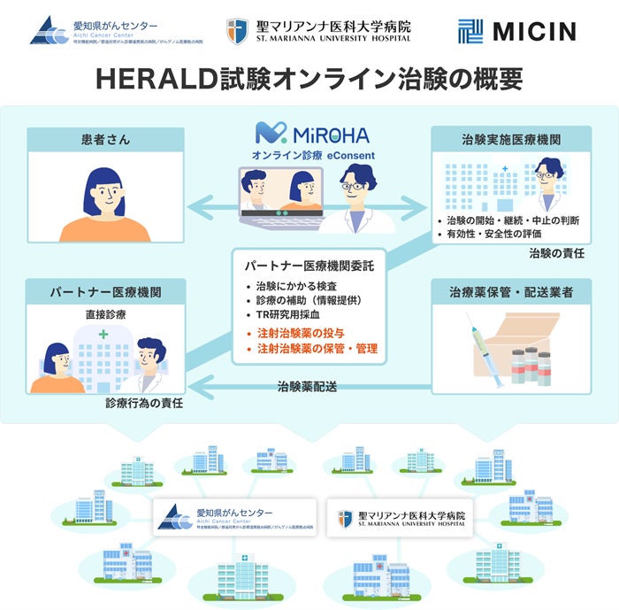 愛知県がんセンター、聖マリアンナ医科大学病院、MICIN、がん領域で注射治験薬における本邦初 完全リモートのオンライン治験を実装