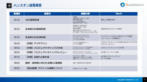① ヘッドウォータースグループから生成AI活用に必要な基礎知識、株式会社マネジメントソリューションズからアジャイルコーチング(※5)に関するカリキュラムを提供しました。