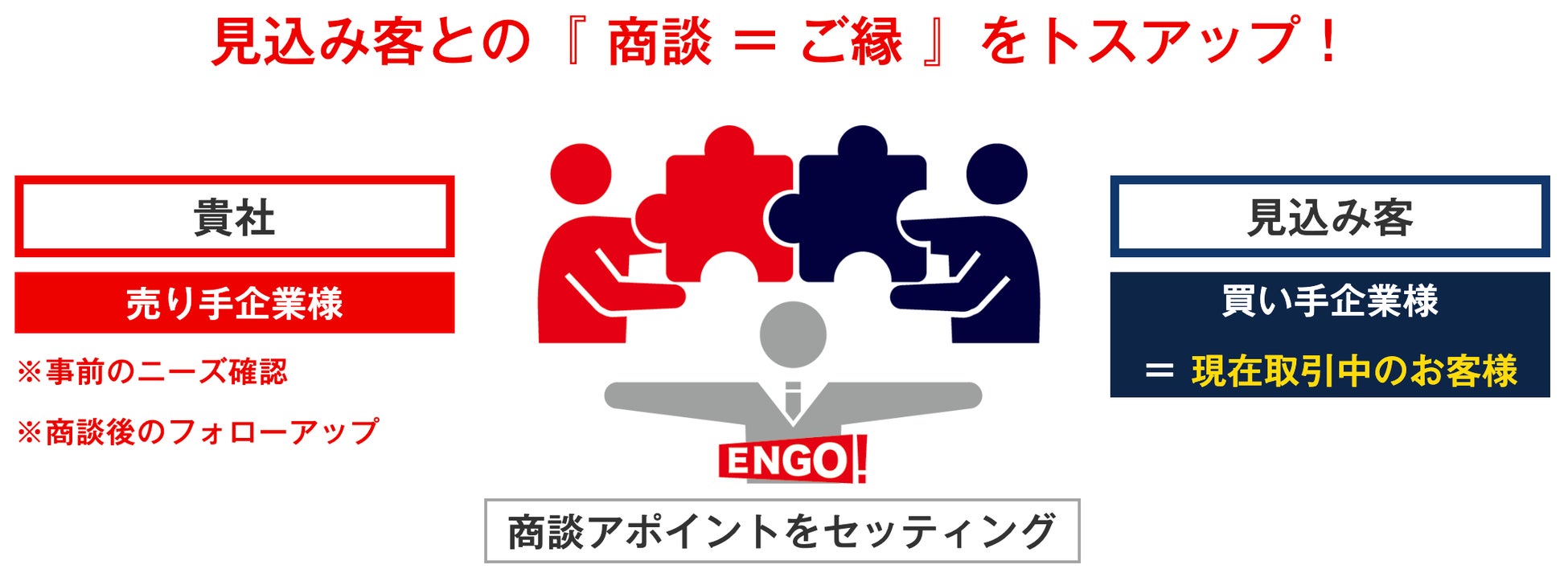 ご縁シェアリングサービス『ENGO』では、既に展開しご好評をいただいている、新規開拓営業を支援するサービス「ENGO商談マッチング」などに加え、さらにサービスの拡充を進めてまいります。